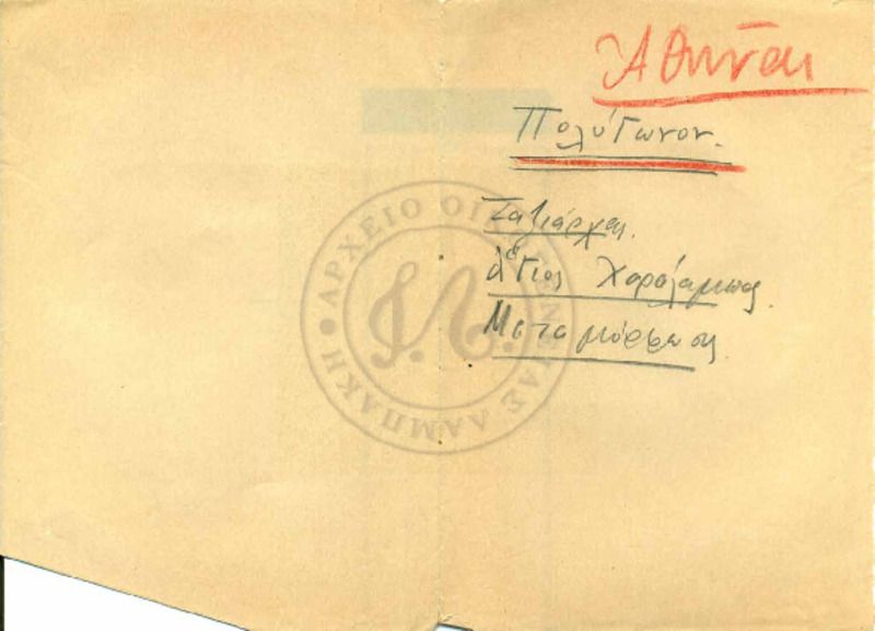 Επιστολή από τα ανάκτορα προς τον Σεβασμιότατο Άγιο Μοσχονησίων