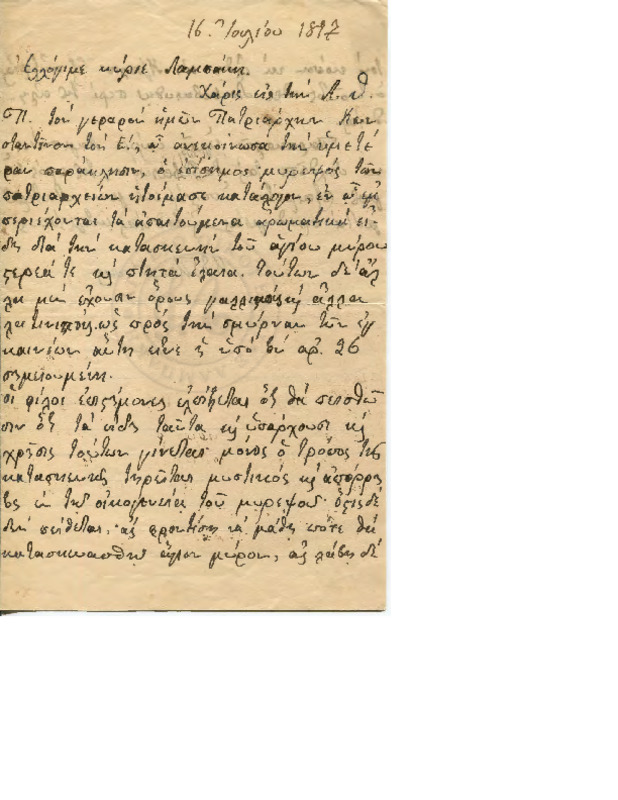 Επιστολή προς την Βασίλισσα Όλγα, με δώρο το βιβλίο του Γεωργίου Λαμπάκη την έκδοση των Επτά αστέρων της Αποκαλύψεως και πρότασή του για προσπάθεια έκδοσής του στην Γαλλία.