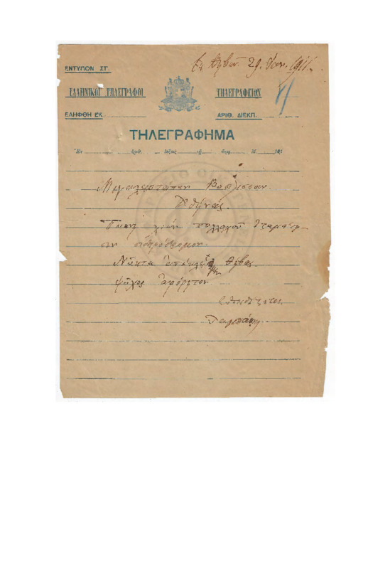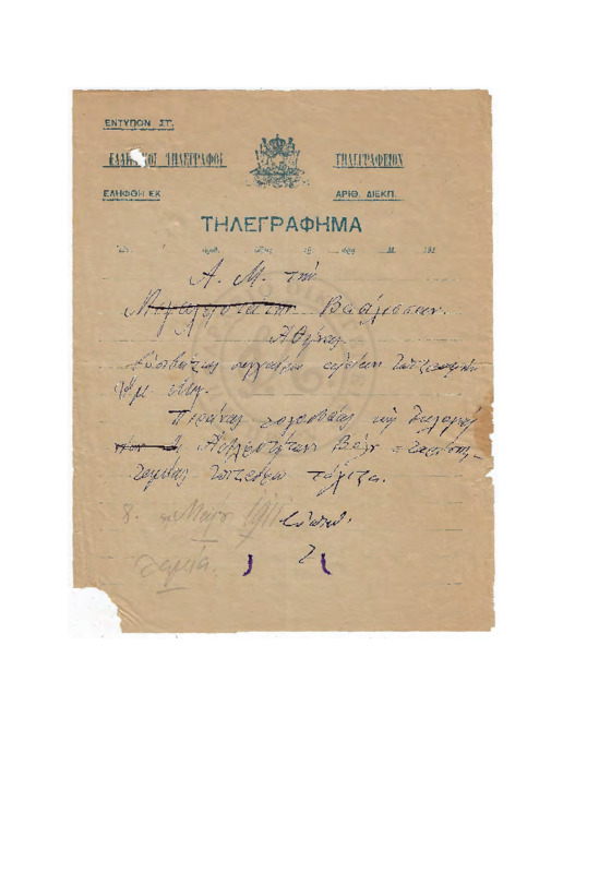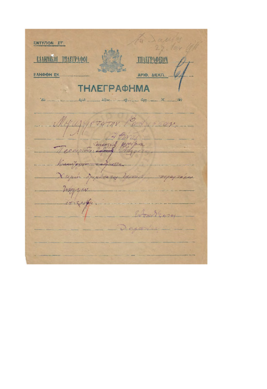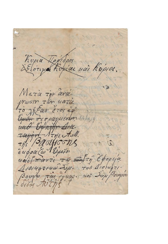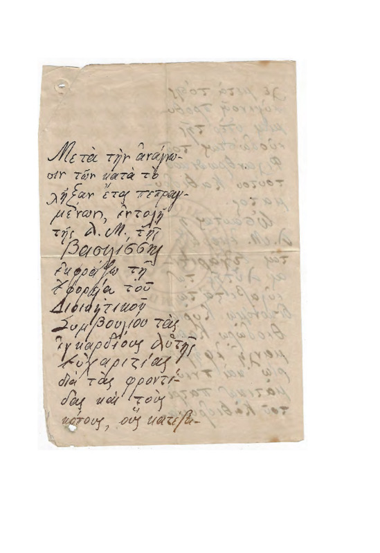 Προσχέδια επιστολής που διαψεύδει χρηματοδότηση της Βασίλισσας και των Ιατρών της Θεσσαλίας που επισκέπτονταν του πρόσφυγες, από τον Ρώσικο Ερυθρό Σταυρό.