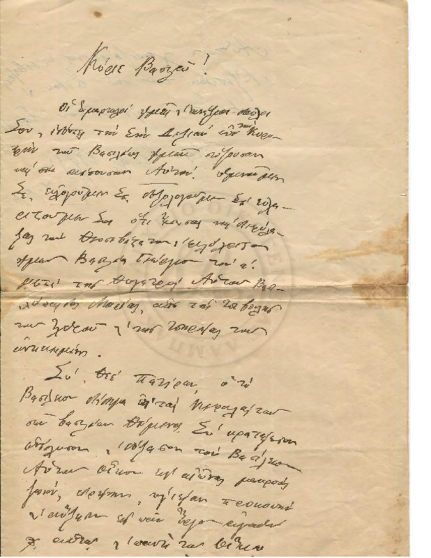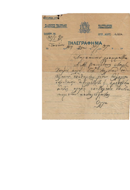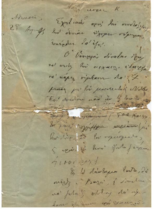 Προσχέδιο ενημερωτικής επιστολής προς την Βασίλισσα Όλγα για την πορεία του ταξιδιού του και την έκβαση των εργασιών. Ξεκινά με ευχές για την ονομαστική γιορτή της βασίλισσας Όλγας.