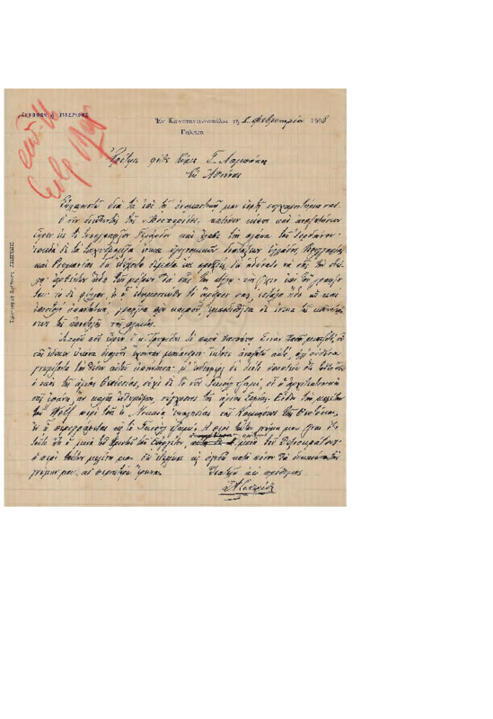 Ενημερωτική επιστολή Θεόκλητου Αθηνών προς Γεώργιο Λαμπάκη για την πρόθεσή τους να συμμετέχουν στην διάσωση και περισυλλογή Χριστιανικών κειμηλίων για τον πλουτισμό του Χριστιανικού Μουσείου.