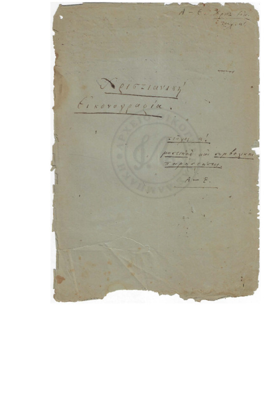 Αλφαβητική λίστα λέξεων Χριστιανικής αρχαιολογίας με σχέδια αντικειμένων, ναών (πιθανόν από τον αδερφό του Γεωργίου, Εμμανουήλ Λαμπάκη)