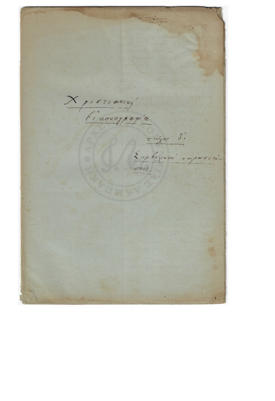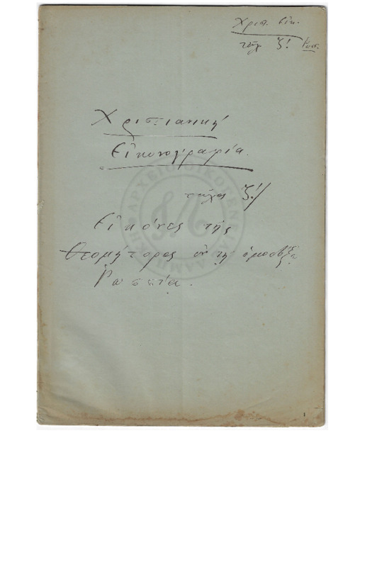 - Θεολογικαί και ηθικαί σκέψεις εκ την Μετάσταση της Υπέρ Θεοτόκου