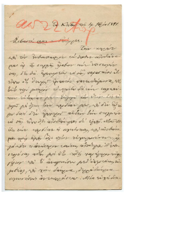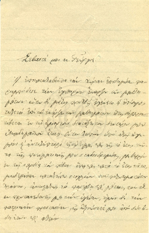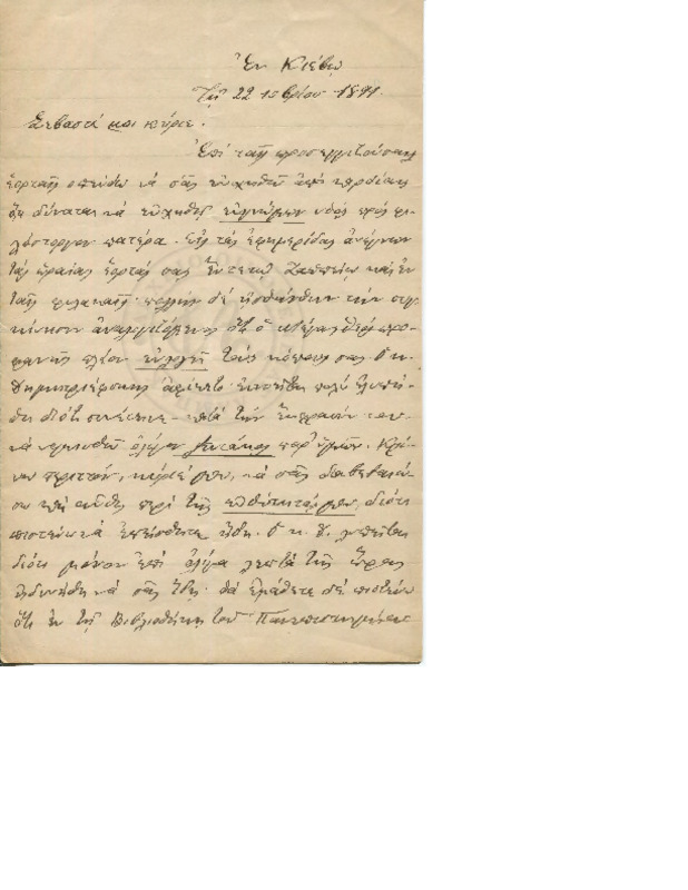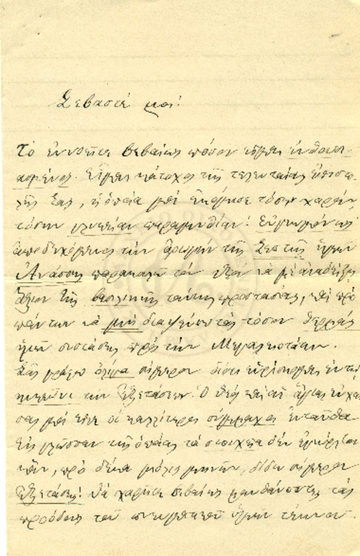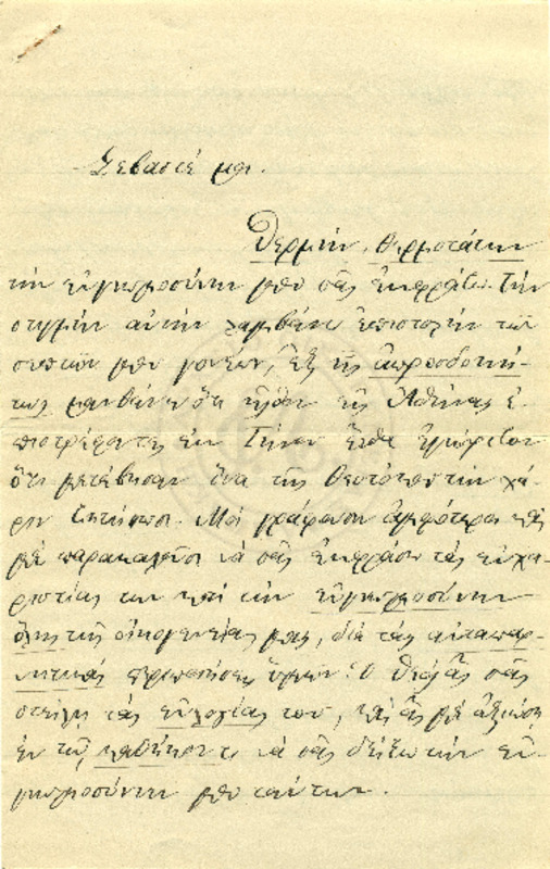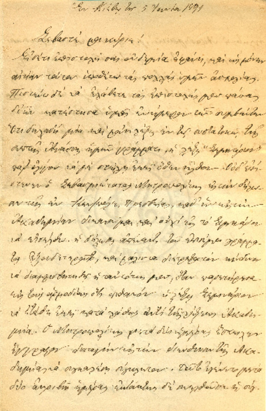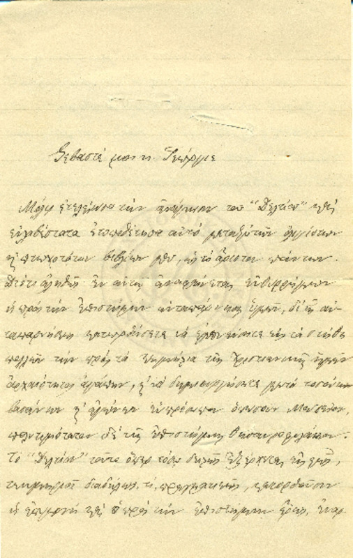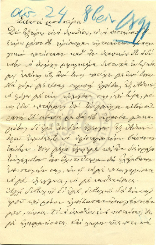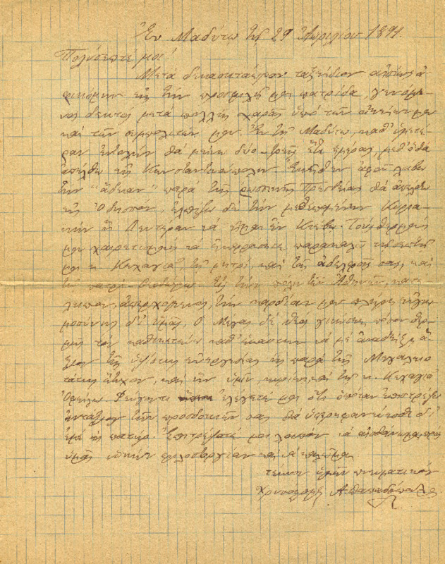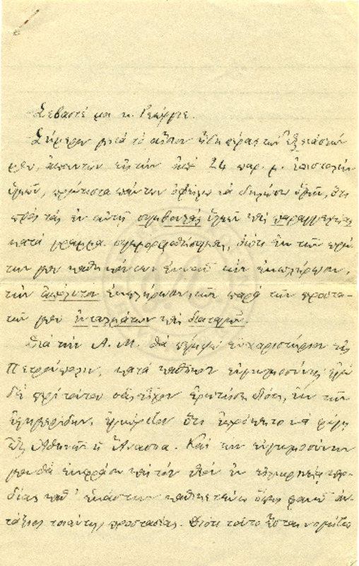 Εκφράζει ευχαριστίες για την φιλοξενία των γονιών του και ενημερώνει τον Γεώργιο για τις εξετάσεις του και την επαφή του με τον Κο Δημητριέφσκη