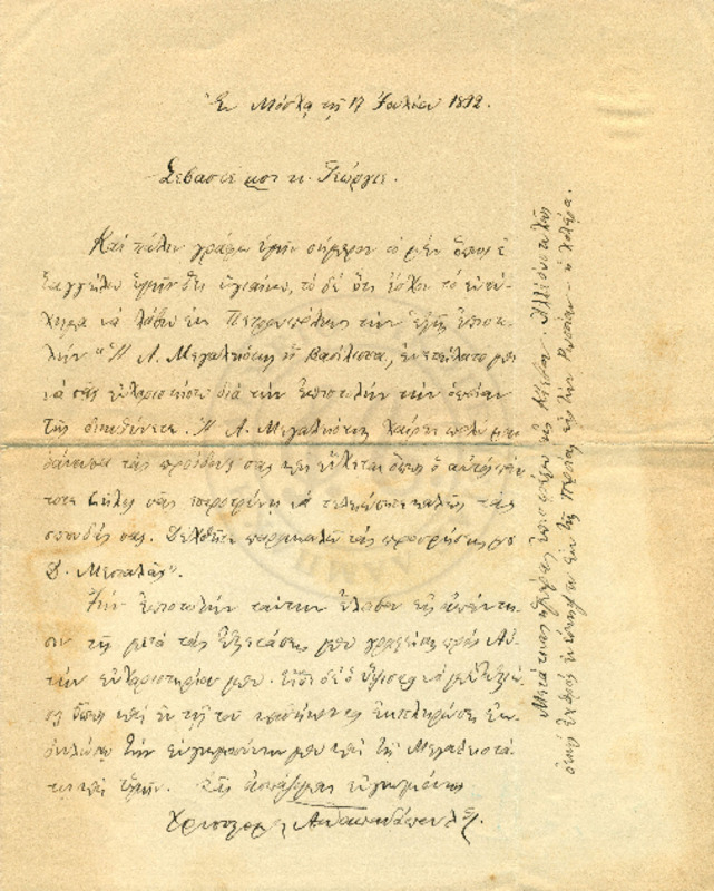 Φιλική επιστολή με ευγνωμοσύνη προς τον Γεώργιο που θεωρεί προστάτη του