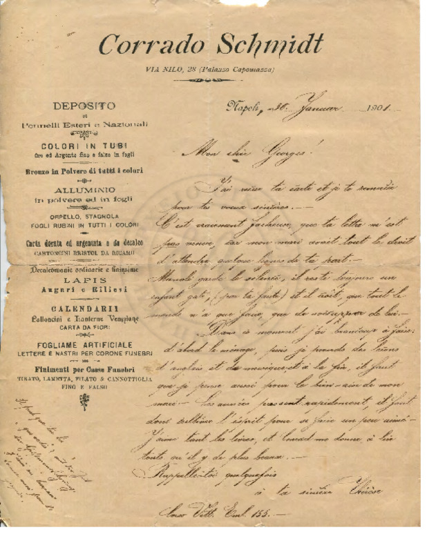 Ταχυδρομικό επιστολάριο από Bernicoli, Ravenna προς Γεώργιο Λαμπάκη