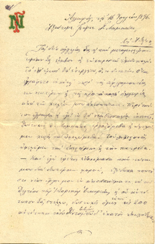 Δωρεά από τον Γεώργιος Τυπάλδος Κοζάκης, ιχνογράφημα της Μονής Δαφνίου προς την Χριστιανική Αρχαιολογική Εταιρεία