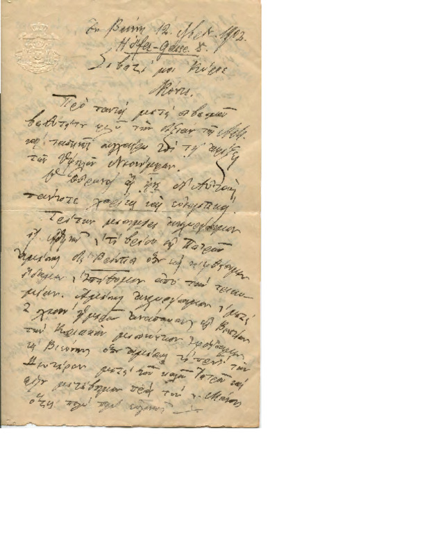 Προσχέδιο επαγγελματικής επιστολής κλειδούχου βασίλισσας προς Πρόεδρο του Ελληνικού Ερυθρού Σταυρού και το Διοικητικό Συμβούλιο για την παροχή οικονομικής βοήθειας και προς τον Ρώσικο Ερυθρό Σταυρό για την βοήθεια τραυματιών πολέμου.